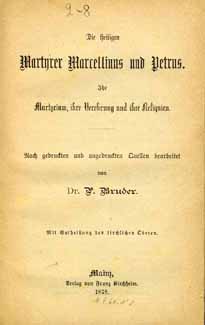 Märtyrer, geboren 3. Jh. in Rom, gestorben um 299 in Rom, Priester; wurde zusammen mit den Exorzisten Petrus um 299/304 am Ort Sylva nigra (bei Rom) enthauptet; die Leichname wurden in die Katakomben an der Via Casilina begraben, sie heißt daher Marcellinus-Petrus-Katakombe; das Martyrerpaar fand Aufnahme in den Canon der heiligen Messe; Einhard übertrug die Leiber der Märtyrer zuerst nach Michelstadt im Odenwald und 827/828 nach Seligenstadt am Main